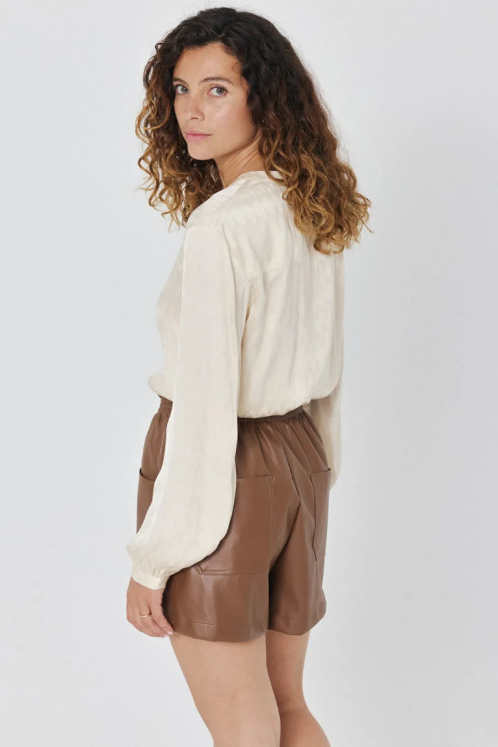 Timeless button-down satin blouse with a relaxed fit. A must-have for any wardrobe.