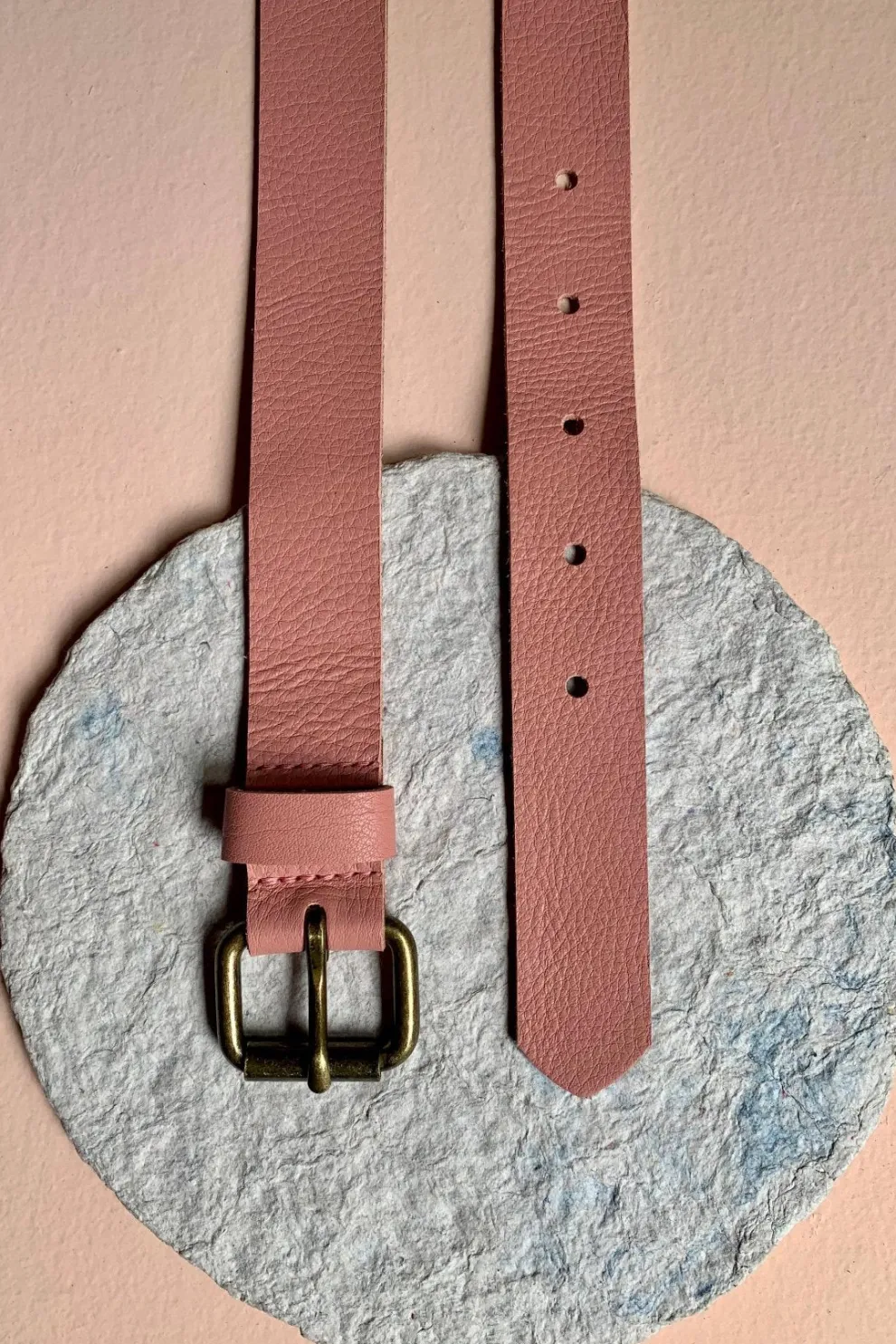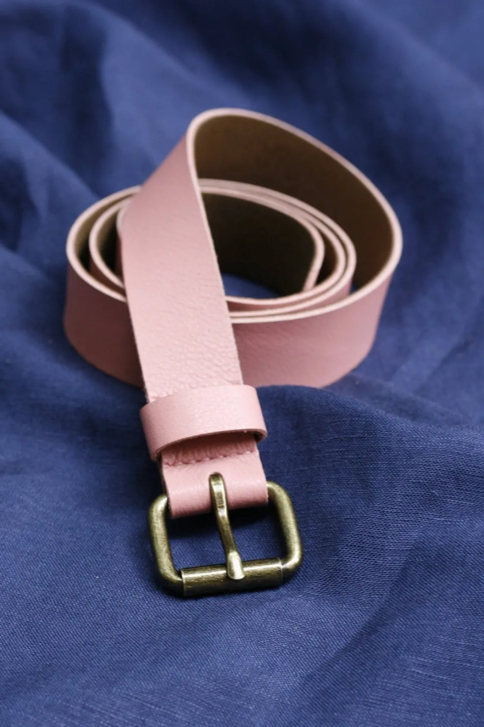 Quality Italian leather belt. 26mm width with an antique bronze colored metal buckle. Italian leather with faux suede lining.