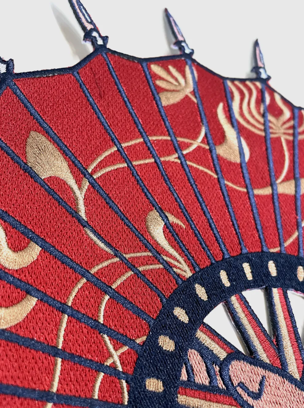 Ironing on embroidered patch.