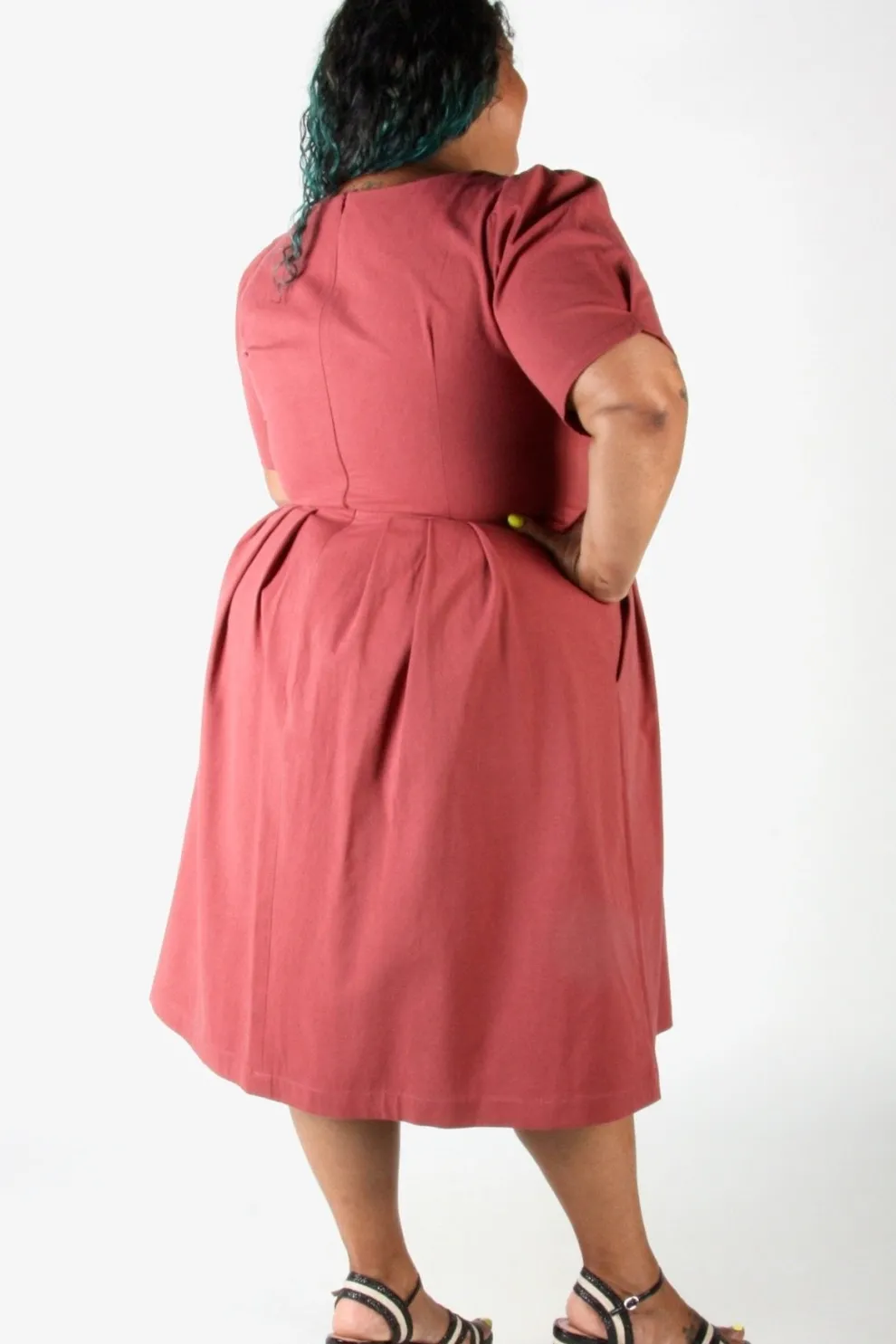 Marie is 1.55m tall and wears our size 18 in Rosewood