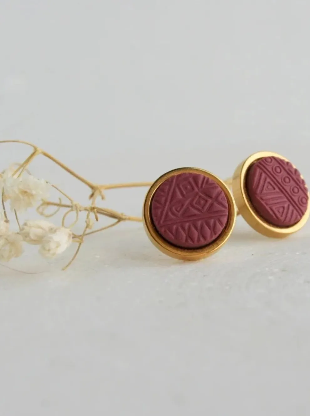 Pretty Art Deco style earrings with gold plated line oval piece on brass and polymer clay piece with standard hooks.