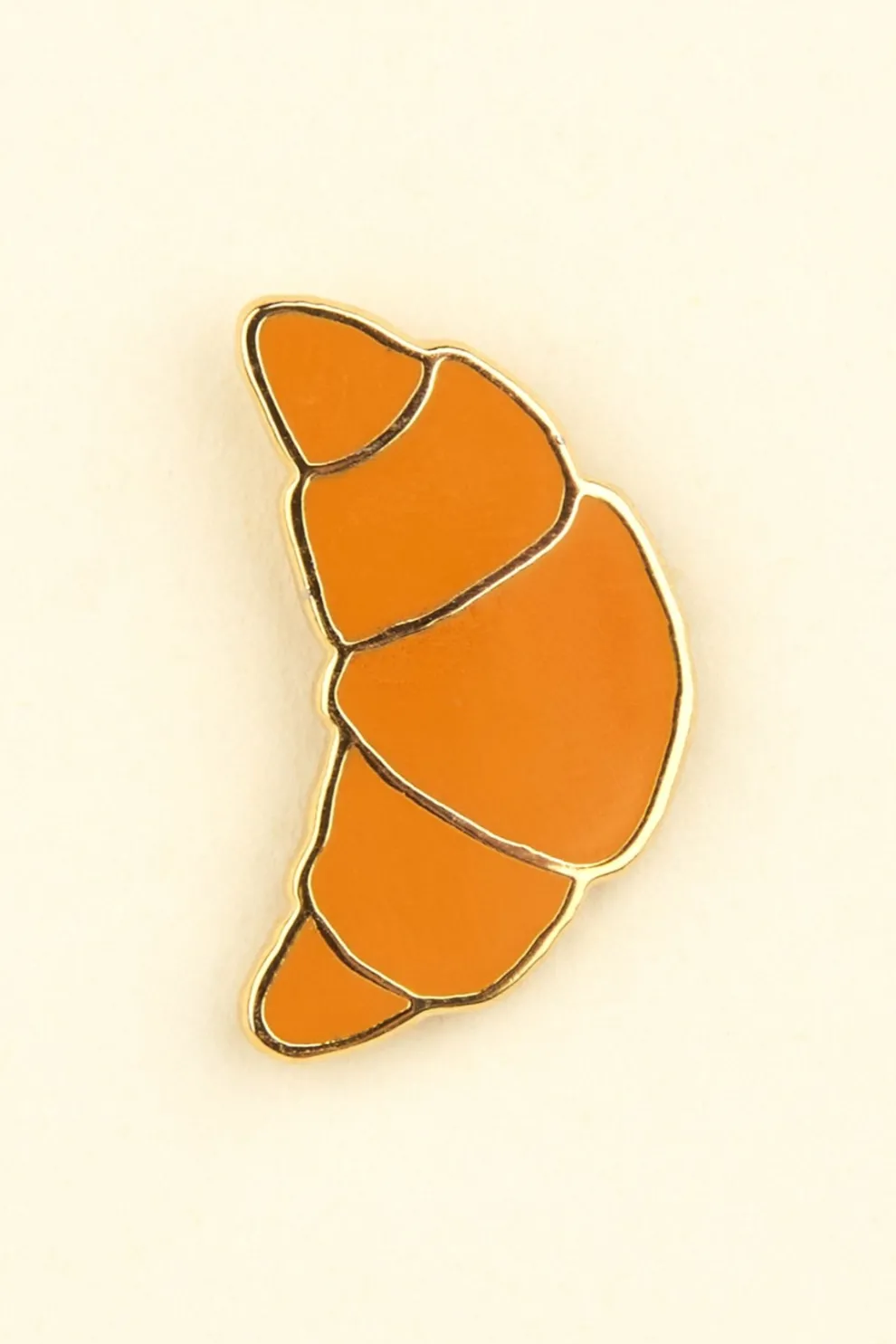 A small crescent shaped pin with pretty gold details that looks great on all jackets, dresses, bags and suspenders.