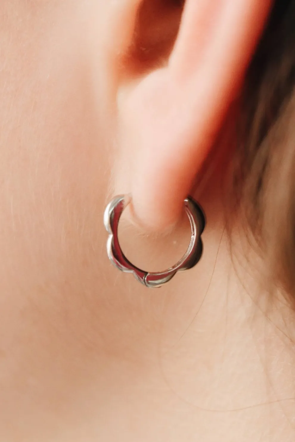Scalloped effect hoop earrings. They are delicate and classic.