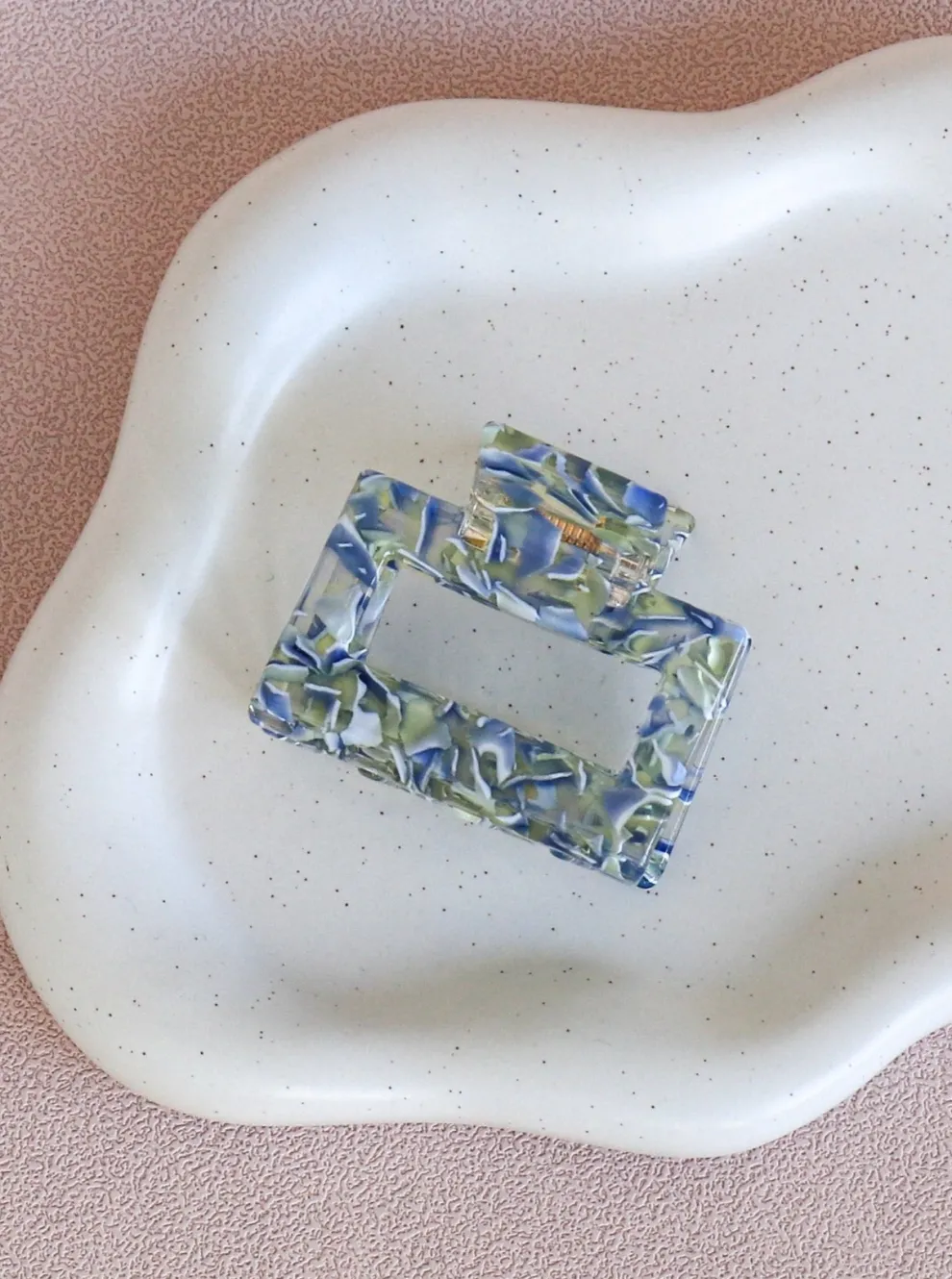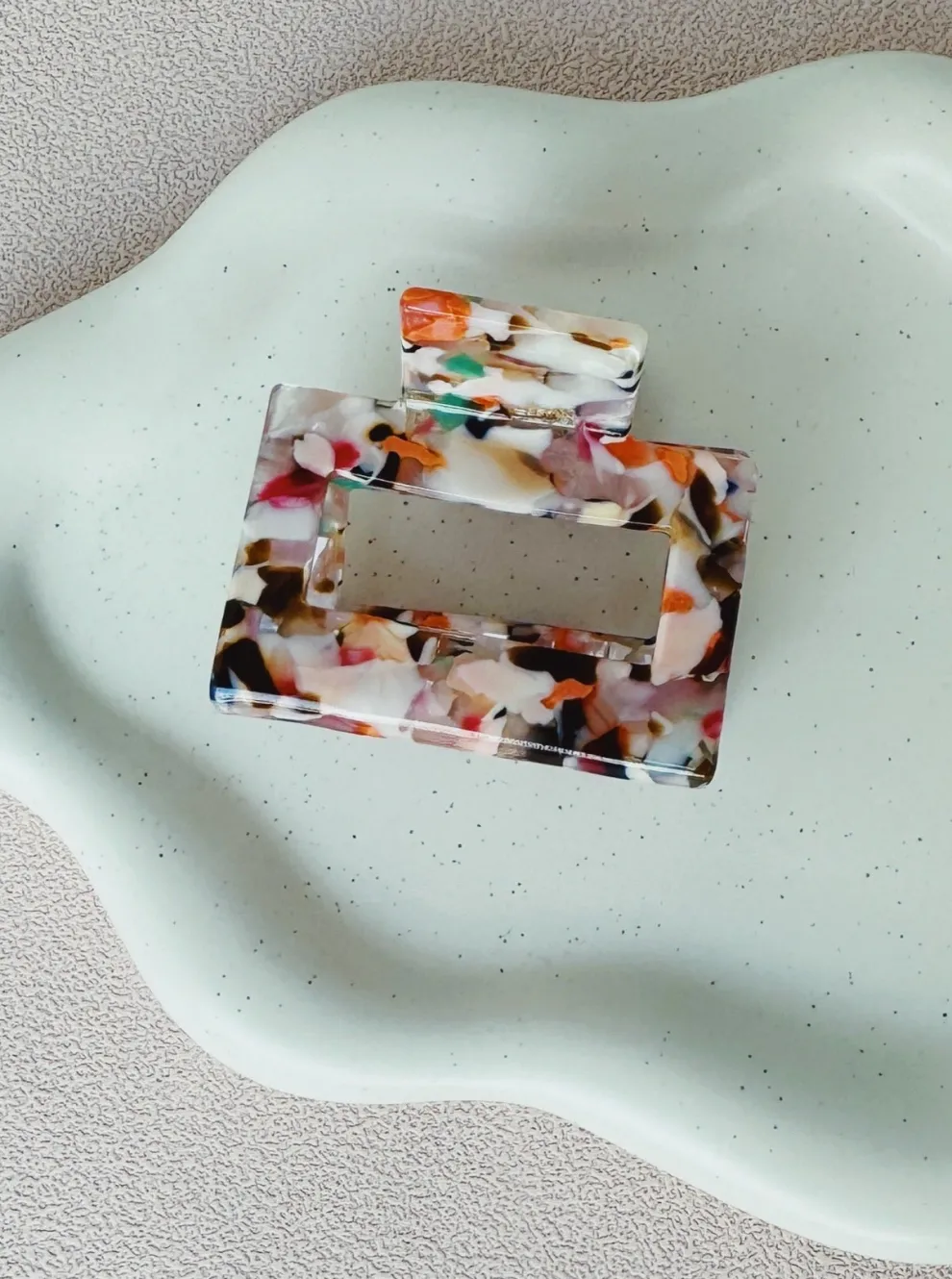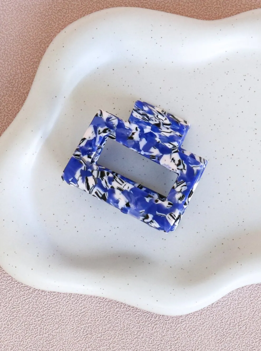 Square shaped acetate hair clip.
