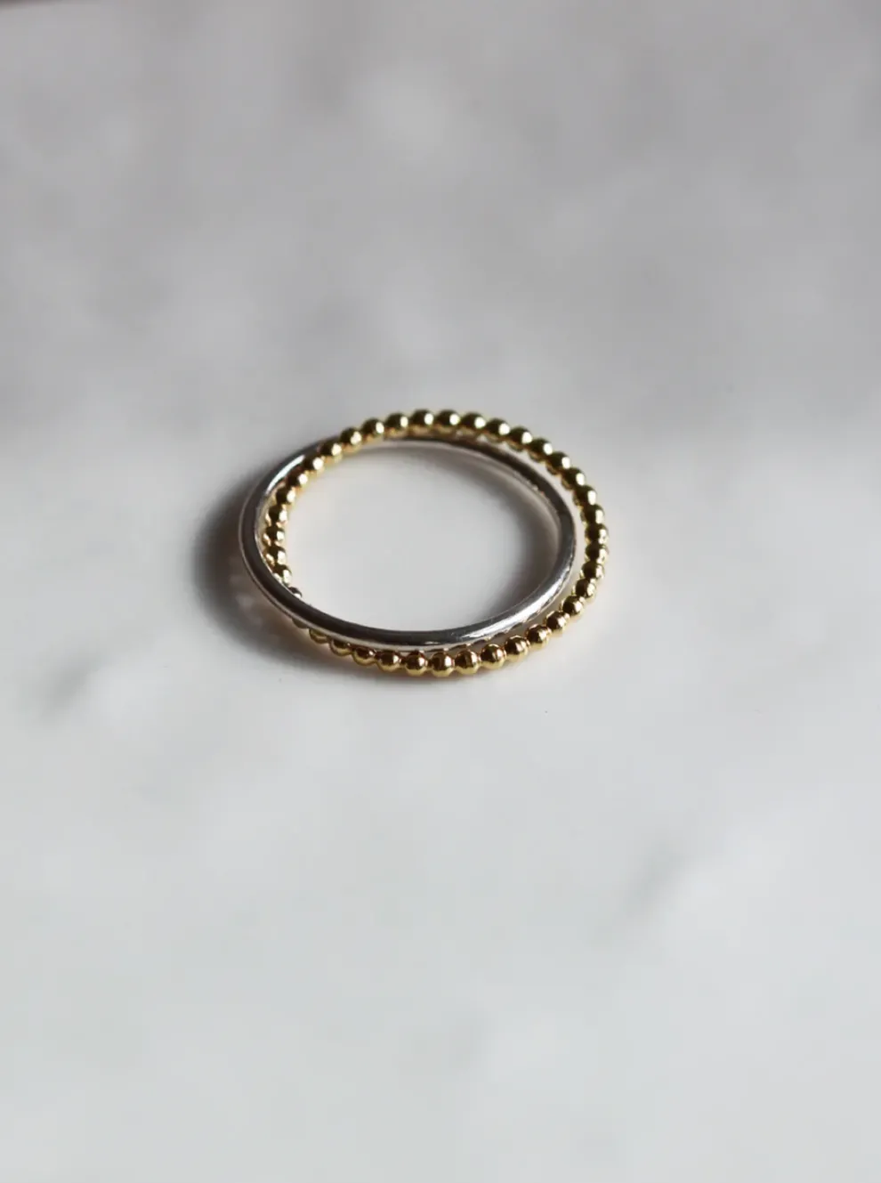 Minimalist daisy ring is made of sterling silver and a small 14k gold ball is soldered in the center.