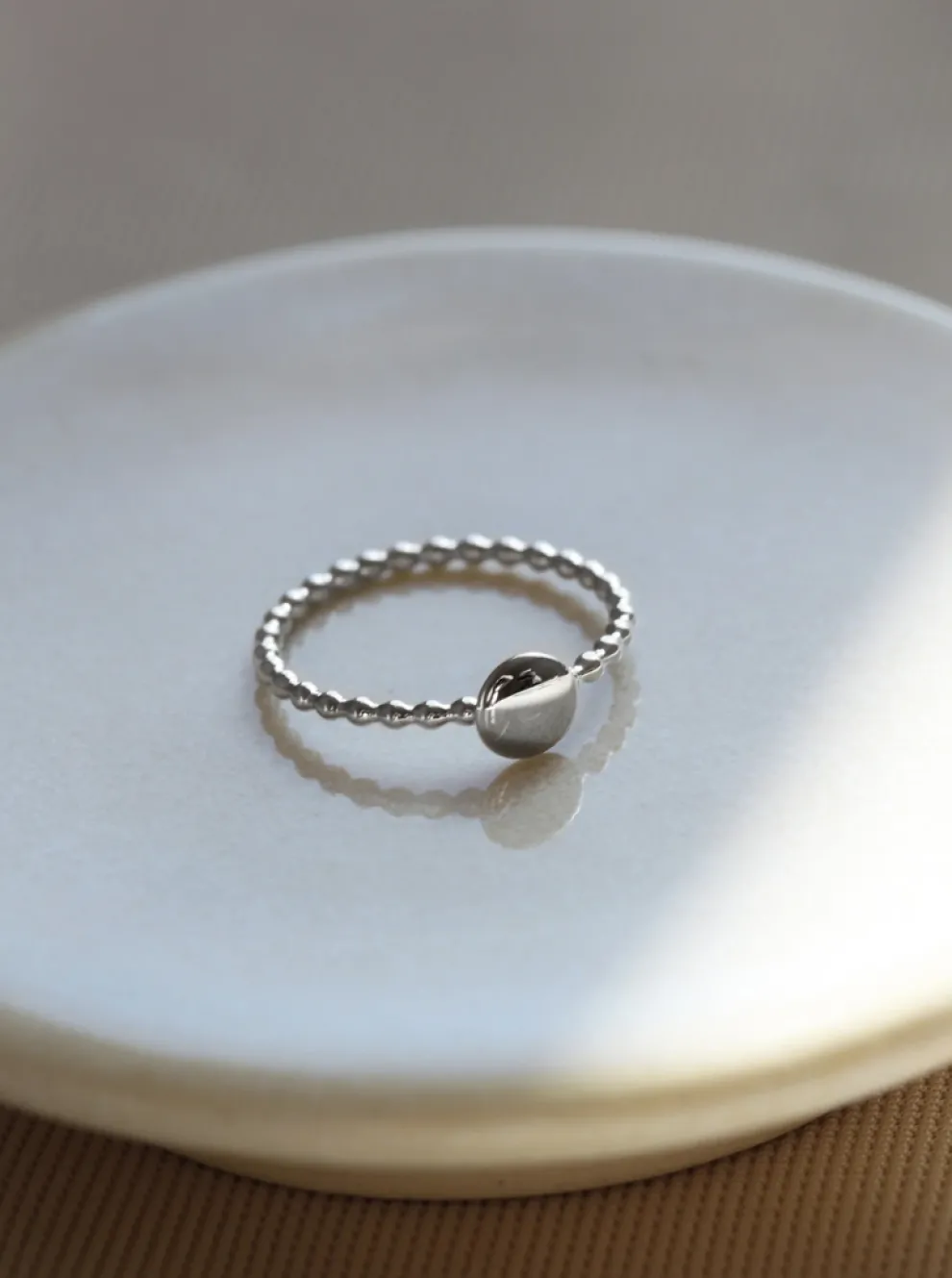 Minimalist daisy ring is made of sterling silver and a small 14k gold ball is soldered in the center.