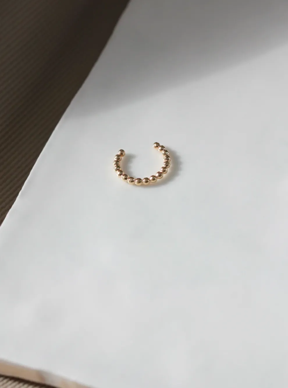 Earrings formed by two rings. The larger one is made from sterling silver and the smaller one is gold filled. The bottom ring hangs delicately below the lobe.
