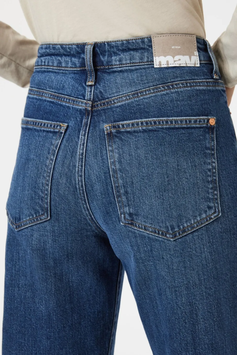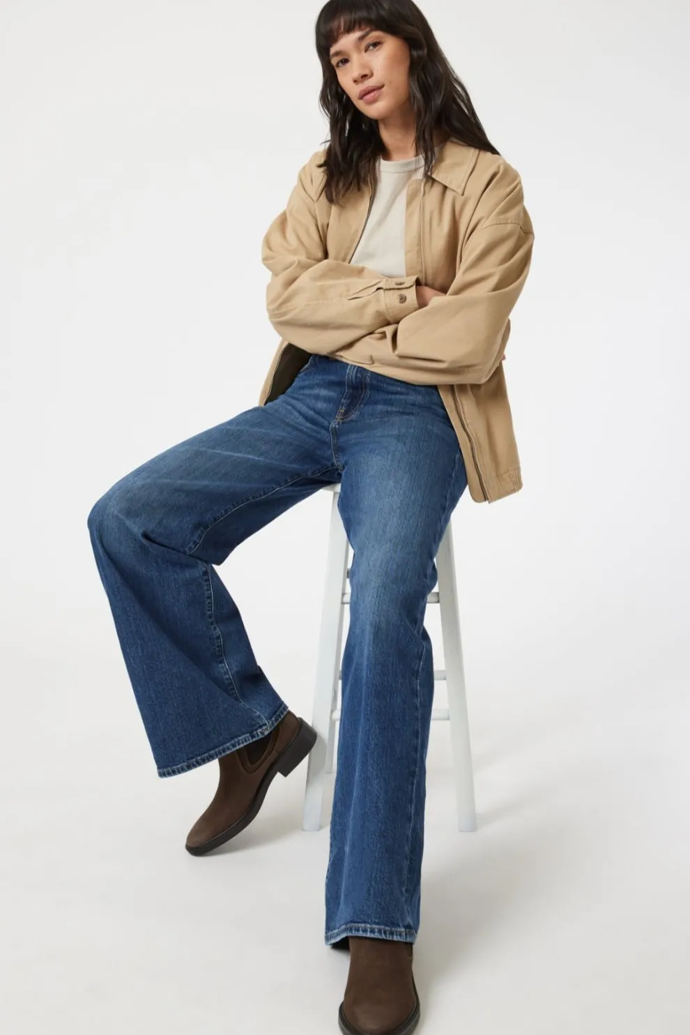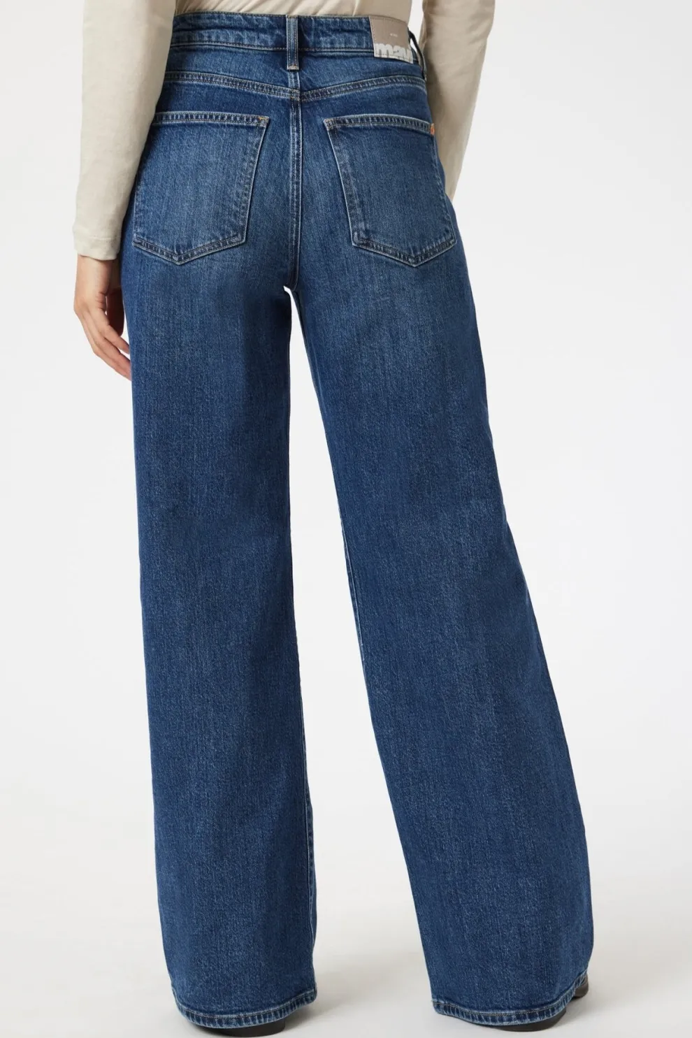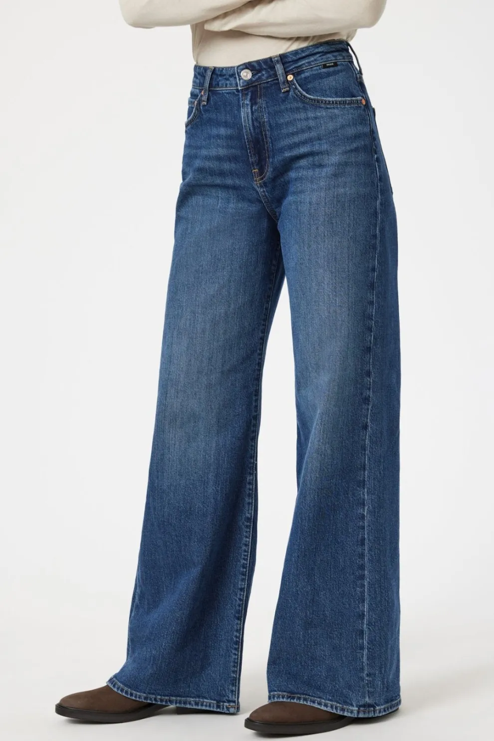 These new wide leg jeans have a comfortable mid-rise waist and a slim fit through the hips. They are loose through the leg and gradually widen out towards the hem. This fit goes well with any shoe.