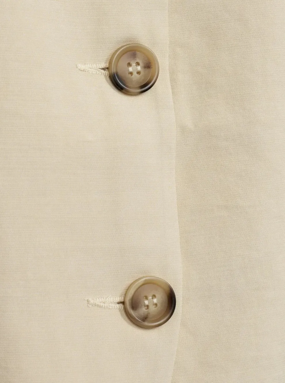 The Freas vest is a classic model in viscose and polyamide, featuring an open neckline and buttoned fastening.