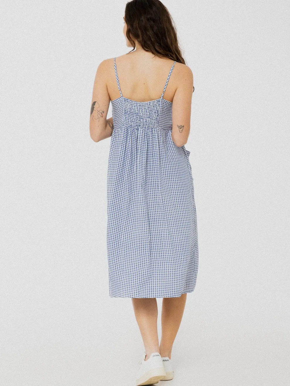 Bohemian dress at the bottom of the knees with elastic band at the back. Adjustable straps.