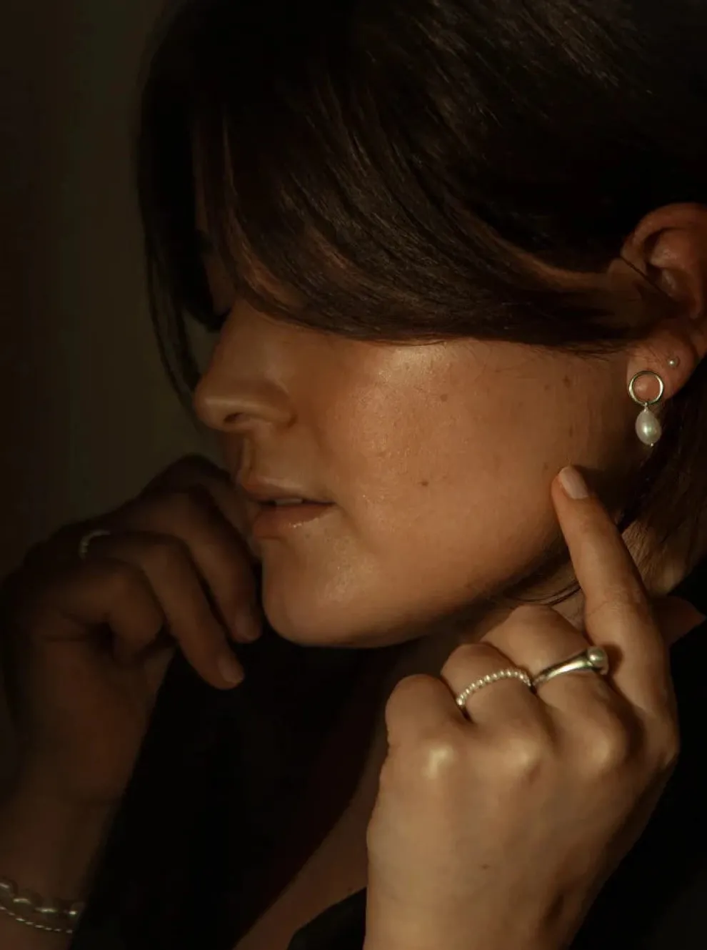 The Pearl signet ring is a sterling silver (925) ring adorned with a white freshwater pearl
