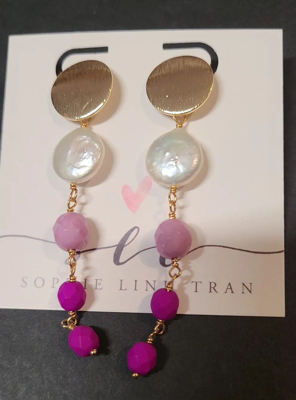 Sophie Linh Tran’s collection is handmade minimalist jewelry. They are colored and gold plated.