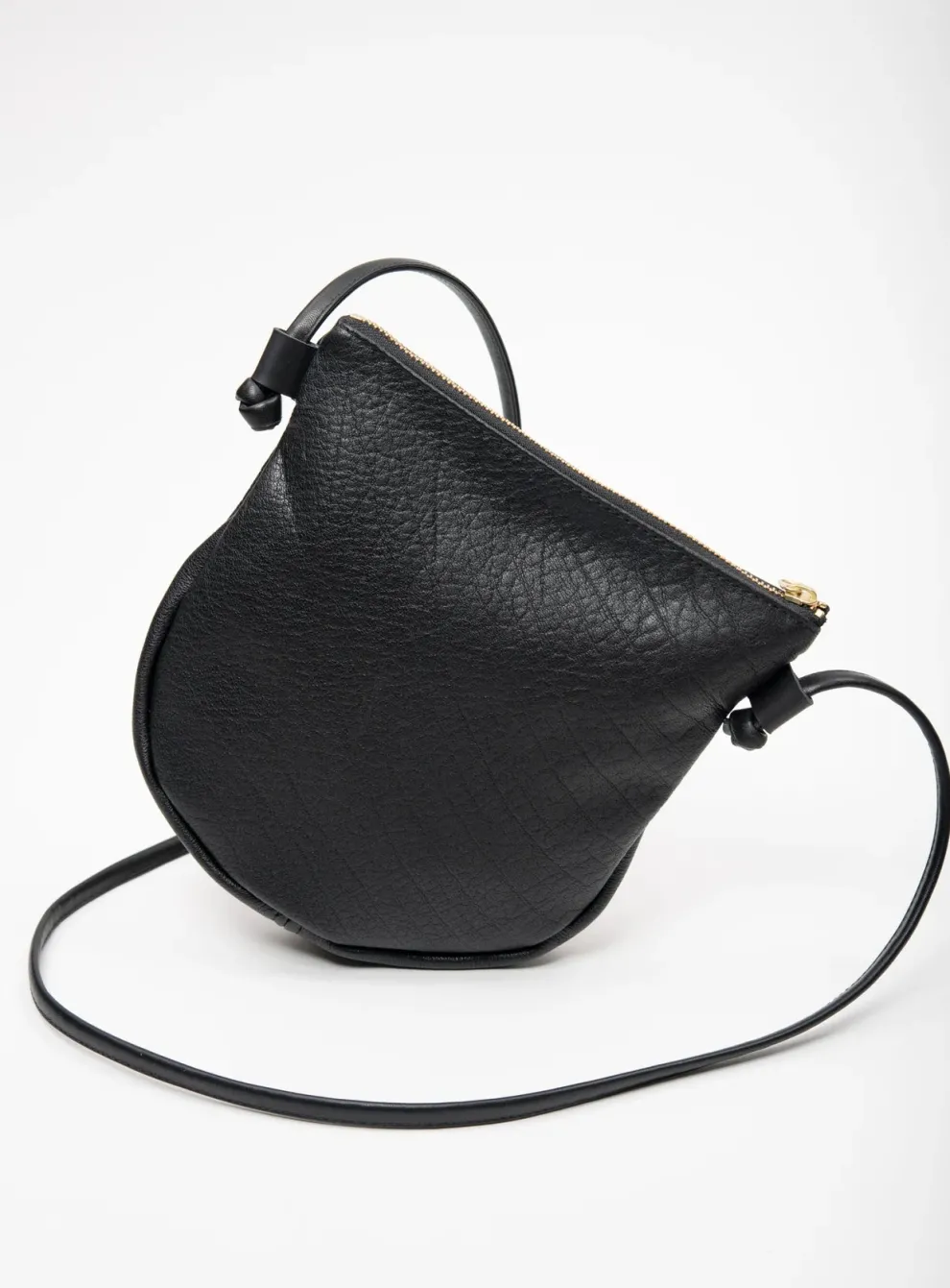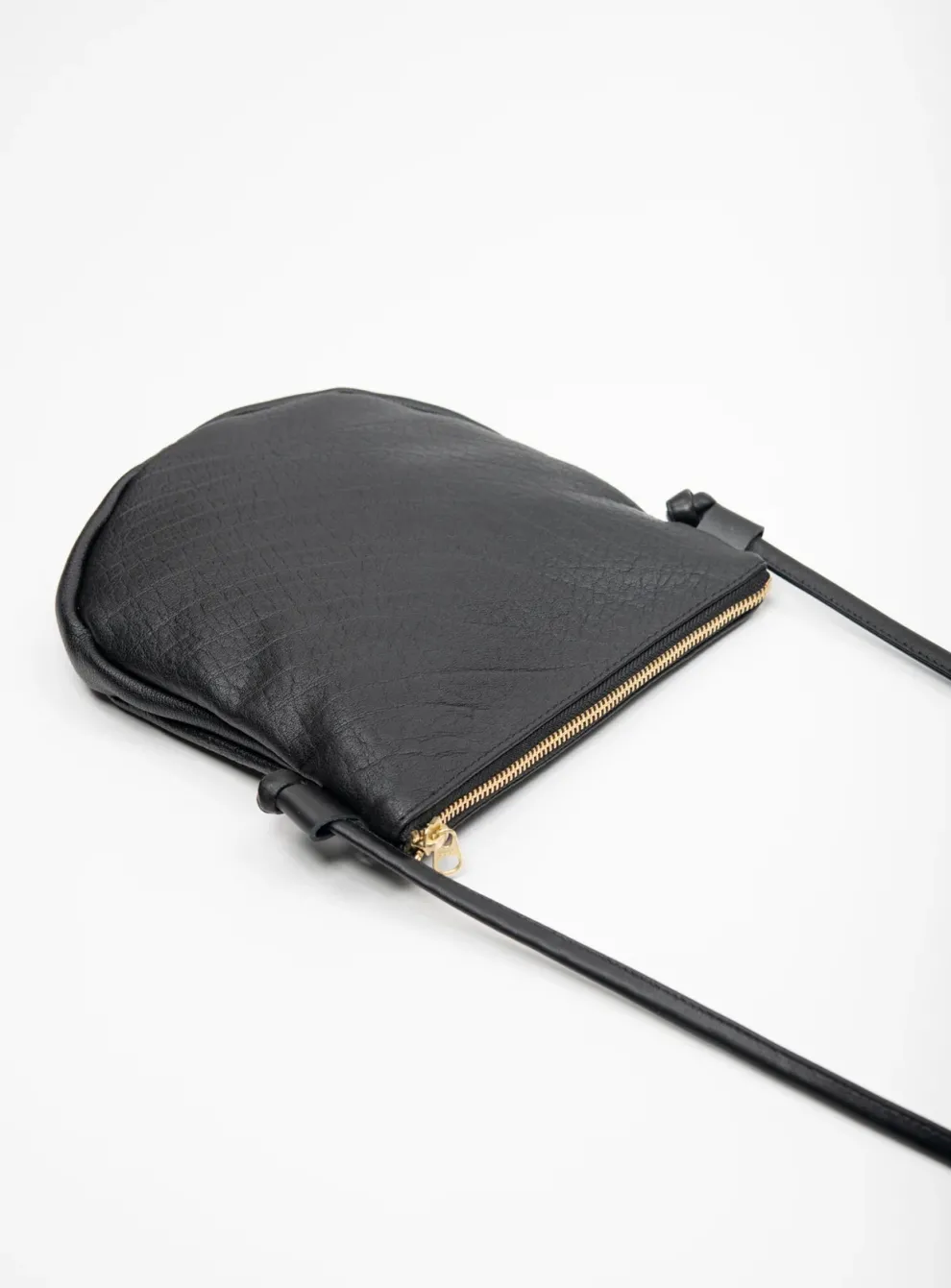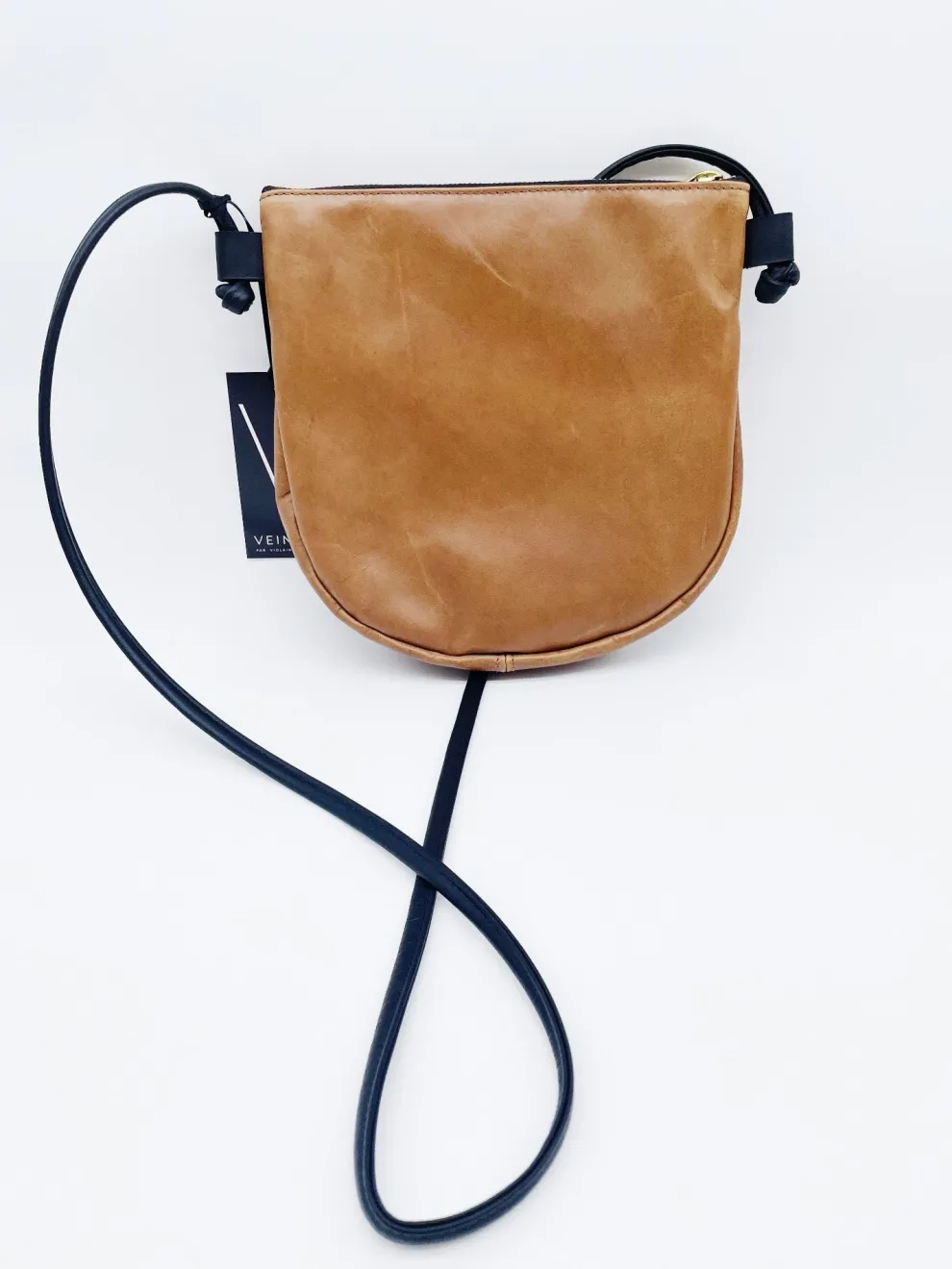 Leather handbag with shoulder strap. Made in Montreal with recycled materials.