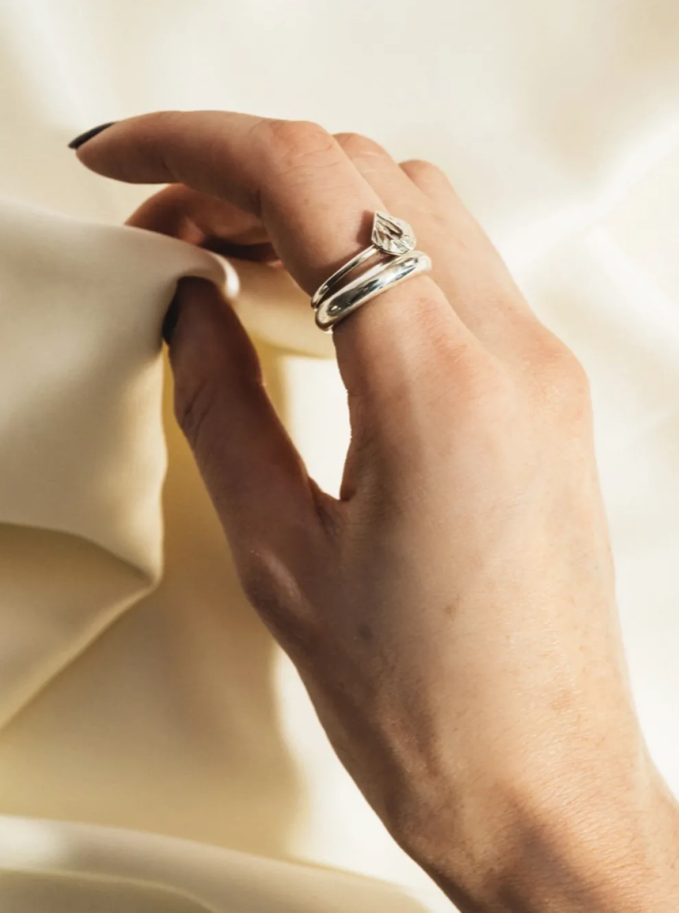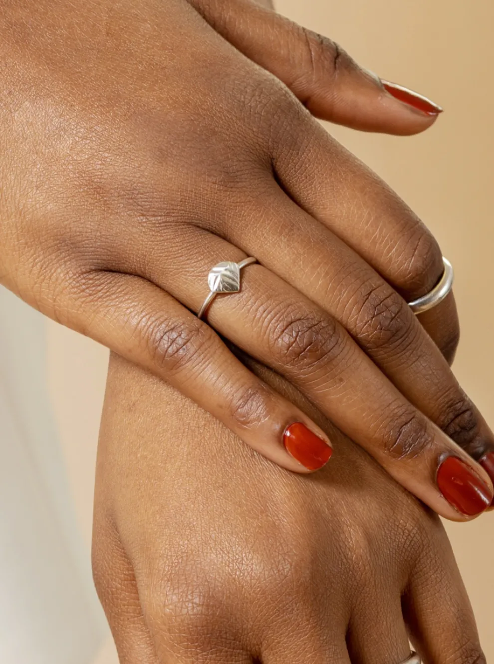 Textured minimalist silver ring. It can be worn alone or layered with otherss.