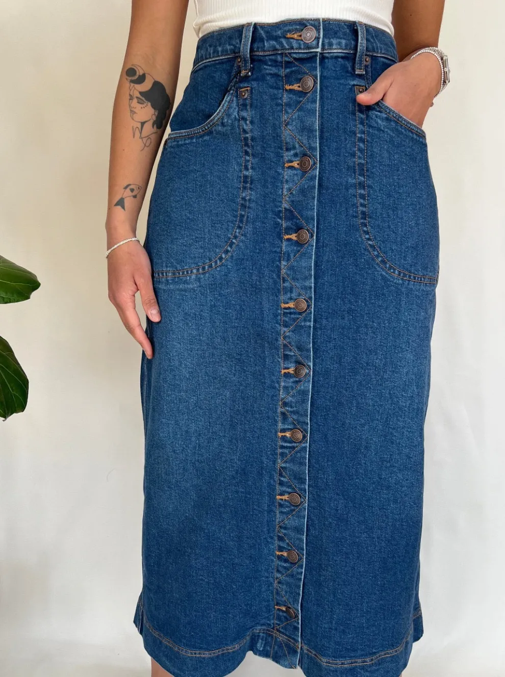 The denim skirt, a wardrobe staple, has been revisited by our team to offer unique comfort and style. This essential will instantly enhance any outfit!